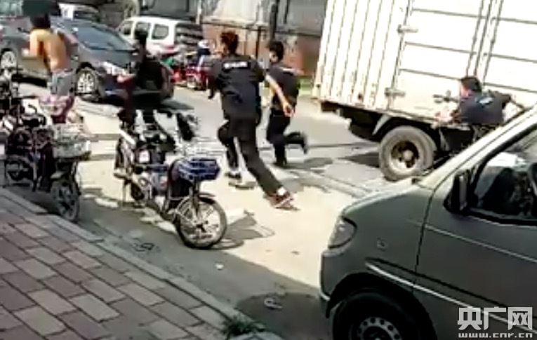 司機:“半個月了一直就在環(huán)島那里查車,我們也搞不清楚他們查車的主要原因,最近手里一直都拿著鋯棒、鐵棍、有的時候拿膠棒,車多的時候伸手就攔”