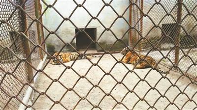 在休息區(qū)附近的動物展示區(qū),北青報記者還看到了三只被關在籠子里的老虎,但籠子上并未標注老虎的品種。