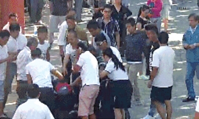 家屬與醫院保安起沖突時有人倒地。視頻截圖
