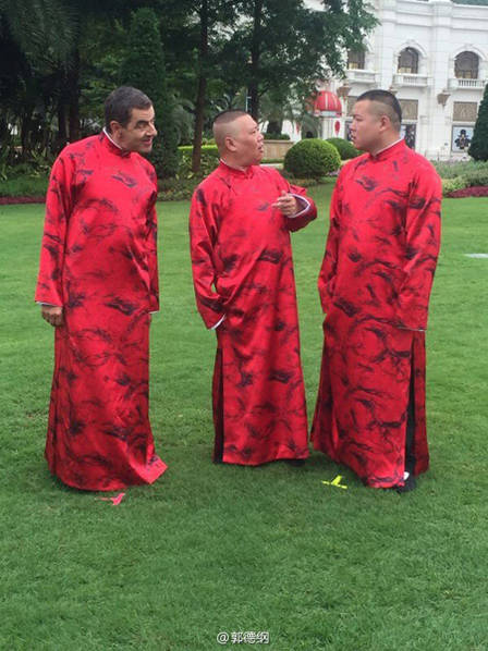 9月7日,郭德綱微博曬出與“憨豆先生”扮演者羅溫·艾金森(Rowan Atkinson)一同工作的花絮照,并寫道:“讓他穿大褂容易,教他唱快板有點難…… ”畫面中,他與“憨豆先生”穿大紅褂唱快板,畫面搞笑有趣,似乎未受“曹云金長文開罵”事件影響。