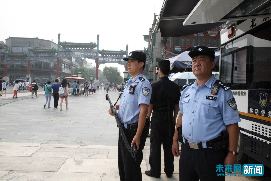 中秋假期期間,北京警方在中秋賞月場所、旅游景點、繁華街區等重點部位啟動區域高等級防控方案,全局日均投入警力2.5萬余人,發動群防群治力量43萬人。(北京警方供圖)