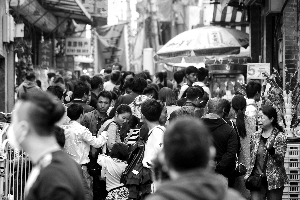 前日下午,位于前門的廊坊二條胡同中游人摩肩接踵。北京晨報記者 史春陽 攝