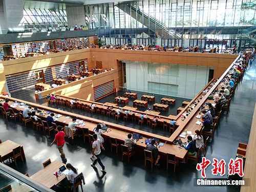 即便是工作日,國(guó)家圖書館閱覽室內(nèi)也有不少人在自習(xí)閱讀。中新網(wǎng)記者 宋宇晟 攝