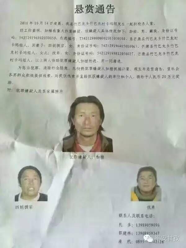 警方發布的嫌犯加措照片。 平安甘孜 圖