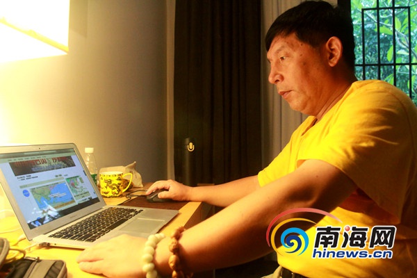 資深媒體人@傳媒老王通過查看南海網了解臺風動向。 南海網記者陳望 攝