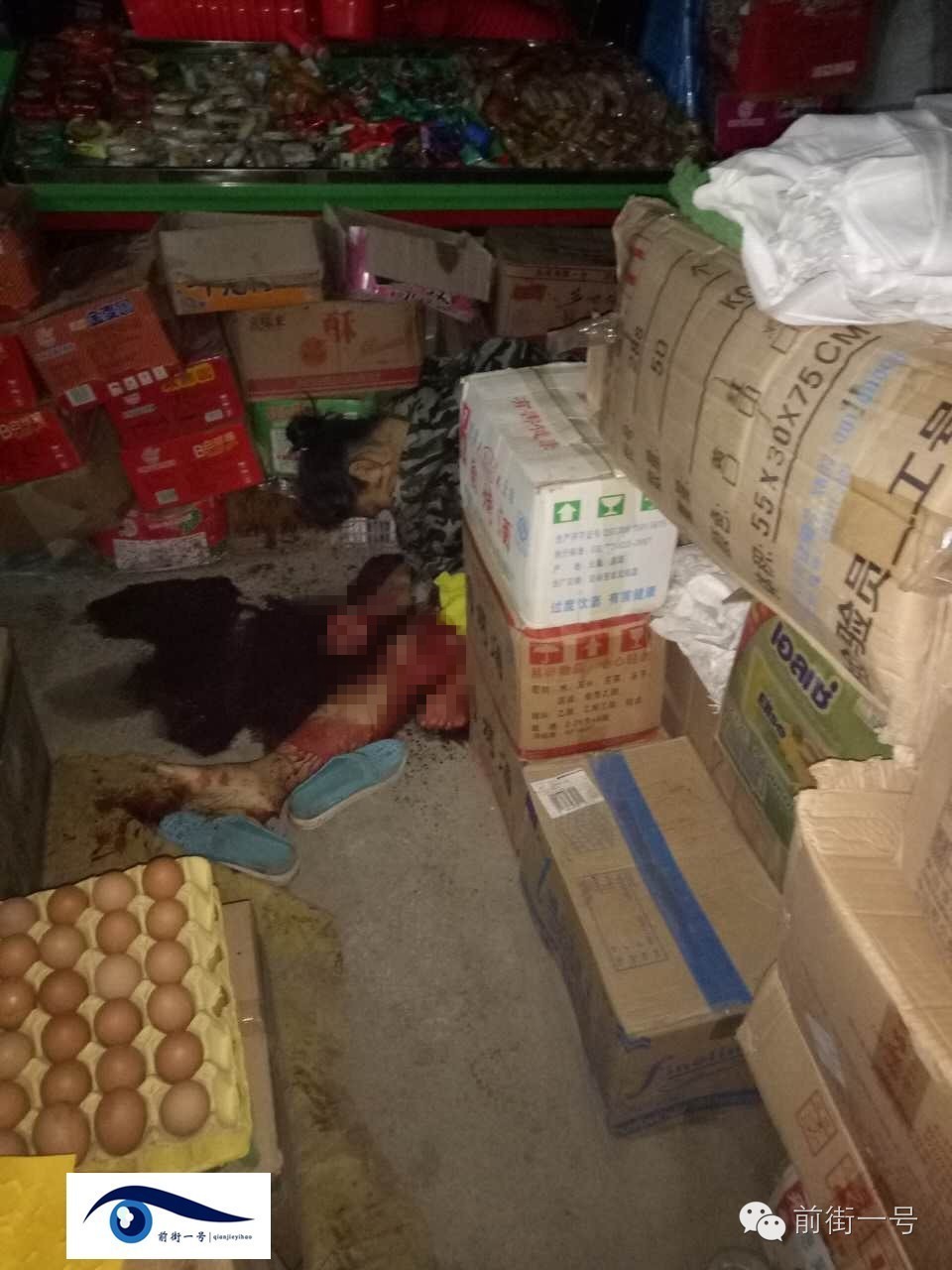 王先生說,次日凌晨3點,警方在距離店鋪6、7米遠的一個小水坑里發現一把沾有血跡的匕首,“刀刃長約15厘米。”王先生提供的照片顯示,在一間堆滿食品箱和雜貨的屋內,兩名女子倒在血泊之中,帶白手套的工作人員對死者進行查看。