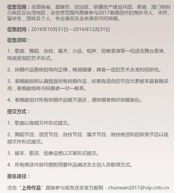 2017年央視春晚開始正式面向社會征集各類節(jié)目
