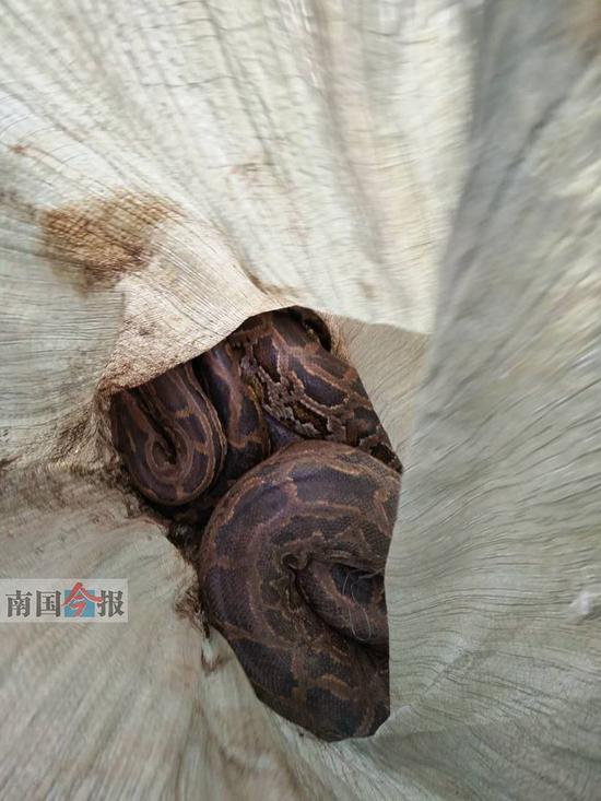 “看到這場景,雖然也感到害怕,但更多的是氣憤!秉S說,他立即跳下大腿深的洞里,緊緊抓住蟒蛇的尾巴,讓其無法往洞里鉆。接著,他騰出一只手打電話,叫在附近山頭養羊的一個村民趕來支援。