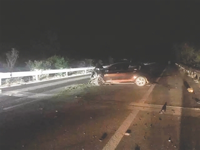 事故現場,一輛小轎車橫停在車道上
