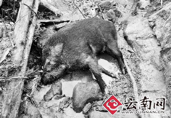 野豬一個轉身慌不擇路地往公路下邊跑去,一頭栽進一米多深的山溝里。他跳下去,在狹窄的山溝里與野豬最后搏斗。他又連續兩棒打在野豬身上,野豬再也支撐不住,慢慢倒下。他又對著野豬連續打了十幾下,直到手中的木棒炸開了花、野豬被打死為止。