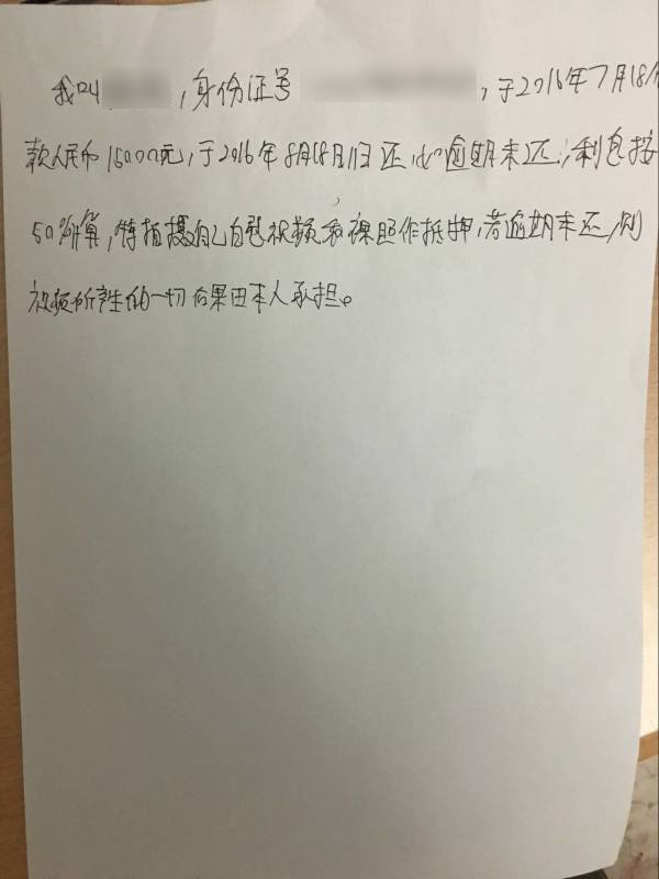 而逾期費(fèi)用更為高昂。有些借條顯示,逾期一天按照本金的20%收取費(fèi)用,逾期超過3天按本金的30%收取,超過7天直接交給催收人員。還有一名借款金額為1300元的在校生,約定的借款期限僅有一周,簽下借條稱,一旦逾期,每天自愿上交本金5%的服務(wù)費(fèi)。