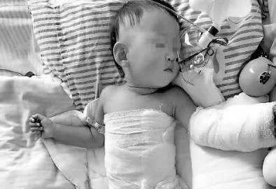 當地的醫院給孩子做了簡單的傷口處理,告訴她,趕緊送大醫院吧,孩子的傷太重了。