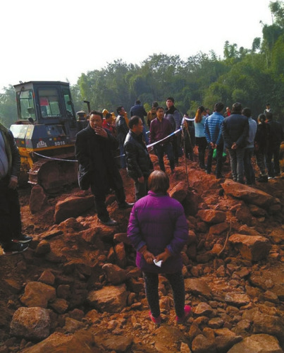 “7日早上8點過,正好在家對面的施工點開始施工,聽得到推土機的作業聲音。村主任羅松找到我,說施工人員還要施工一天半,今天要把已經推出來的地方,降低坡度,且推出來的土石不會推落在我的田地里,讓我勸勸母親不要去阻工。村主任這樣說,我就答應了,隨后我就到下長鎮趕集去了。”羅忠成說,等我接到親戚電話后,慌忙趕回家時,慘劇已經發生了。