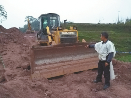 張吉橋介紹,他當時就站在推土機斜后方約30米外的坡上,看著推土機往下行駛,突然發現推土機前有人露出腦袋。同時,另一名施工人員也發現了這個情況,連忙去阻止推土機。當他敲打車門時,推土機駕駛員反應過來時,慘劇已經發生。至于事發前推土機距離周光連有多遠時,張吉橋介紹,大概有二三十米,但他又補充道,推土機快靠近周光連時,他才注意到推土機前有人的情況,并稱周光連當時是坐在地上的。
