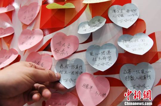 圖為寫滿祝福語的“愛心牛肉面”便利貼。 楊艷敏 攝