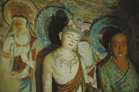 早在魏正始年間(公元240-249年),月氏人竺法護就在敦煌出家,從罽(音ji)賓文人和龜茲使節(jié)處得到一些梵文佛經(jīng),在敦煌、長安、洛陽等地名聲鵲起,信徒多達上千人。此后,他的弟子竺法乘,敦煌人于法蘭、于道邃等高僧興建寺廟,為大眾現(xiàn)身說法。這樣濃郁的佛教氛圍,讓星星之火成燎原之勢,不少內(nèi)地高僧到此開鑿洞窟修行,莫高窟應運而生。