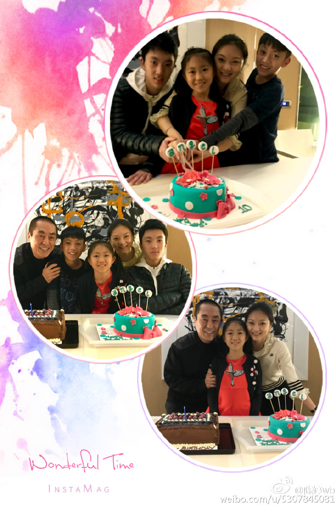 組圖:一家五口排排坐!張藝謀全家為小女兒慶生