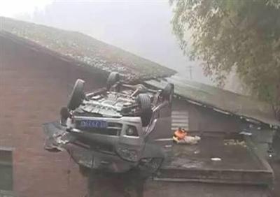 1月5日,又一輛面包車“飛”上達州市民李明軍家的屋頂。