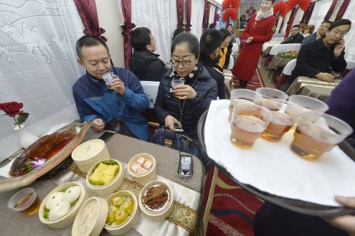 1月13日,旅客在銀川發往杭州的列車上用餐。新華社記者 彭昭之 攝