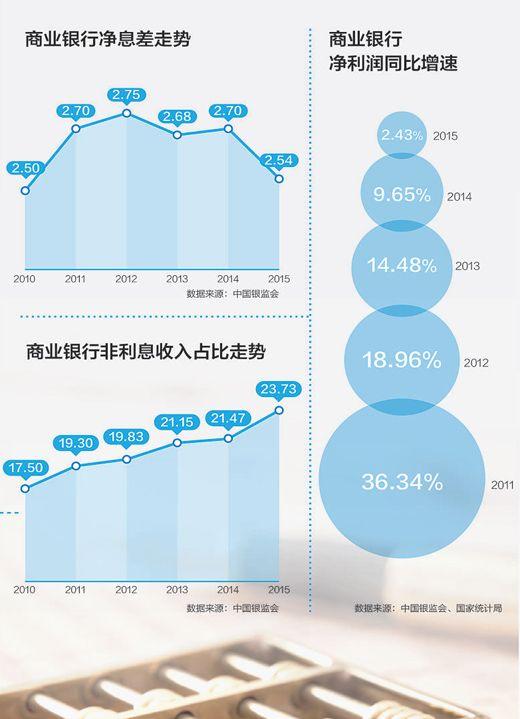 18.96%、14.48%、9.65%、2.43%,從2012年到2015年,商業銀行凈利潤增幅走出了一條明顯的下行曲線。