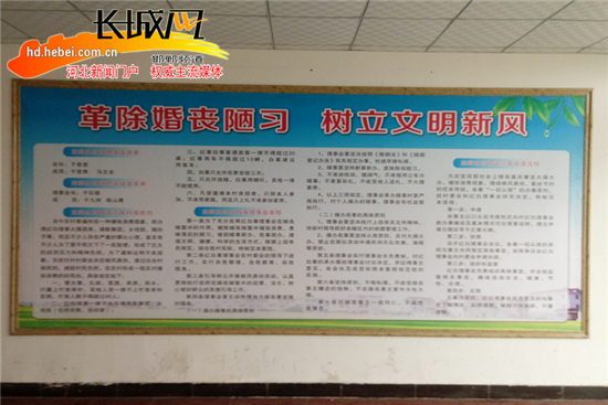 以前,在村民家的紅事上,嗩吶、酒席是必備項目,F在不用嗩吶改用大喇叭,不設彩虹門,不請婚慶公司,酒席采用一頓飯、一碗菜的方式,控制鞭炮燃放,控制迎親車輛,一場紅事能給主家節省近三萬元。