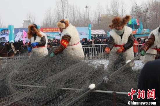 1月22日,遼寧省撫順市,拉網(wǎng)的漁民。當(dāng)日,2017神州北湖(中國(guó)撫順)首屆冬捕節(jié)啟幕,民俗表演、拉網(wǎng)出魚(yú)、頭魚(yú)拍賣、游客逛年貨大集等活動(dòng)逐一展開(kāi)。中國(guó)北方的冬捕,沿襲悠久的漁獵文化,再現(xiàn)古老的漁獵盛況。此次冬捕,采用2000米的大拉網(wǎng)深入冰底網(wǎng)魚(yú),每日下網(wǎng)2次,最多時(shí)一網(wǎng)可出魚(yú)4萬(wàn)斤左右。開(kāi)幕當(dāng)日,頭魚(yú)中32斤的胖頭魚(yú)、38斤的青魚(yú)和18斤的草魚(yú),分別拍出90.8萬(wàn)元、46.8萬(wàn)元、46.8萬(wàn)元。中新社記者 沈殿成 攝