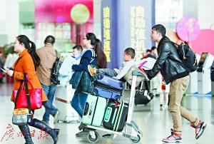春運(yùn)期間,乘客在白云機(jī)場(chǎng)趕飛機(jī)。
