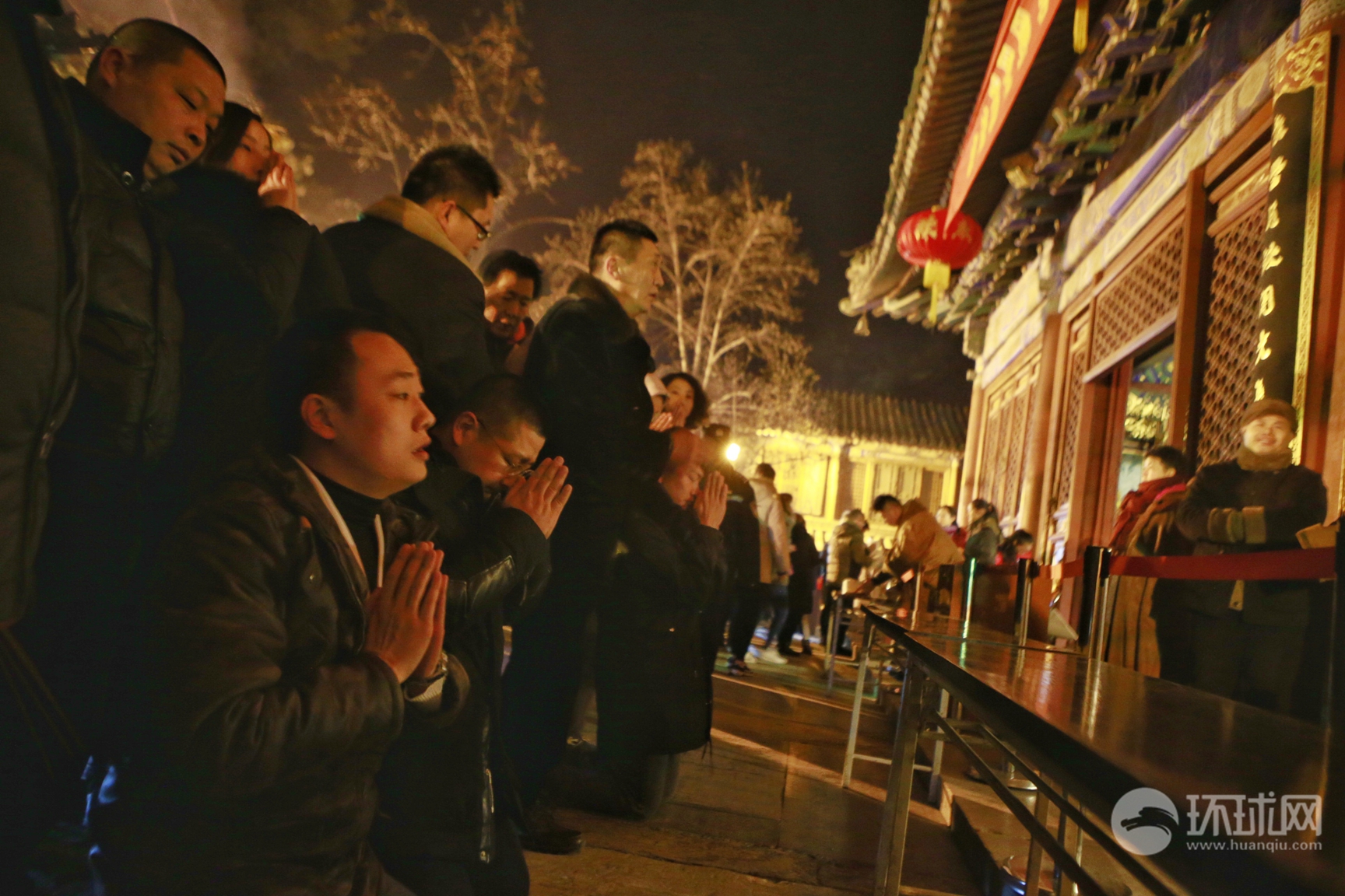 2017年1月28日除夕夜,門頭溝區潭柘寺,人們在此燒香祈福,期盼新的一年會有好運氣。為了爭得新年頭香,零點時分成了進香的高峰,大年初一凌晨到清晨的進香人數約15000人左右。(攝影:《環球時報》英文版 李昊)