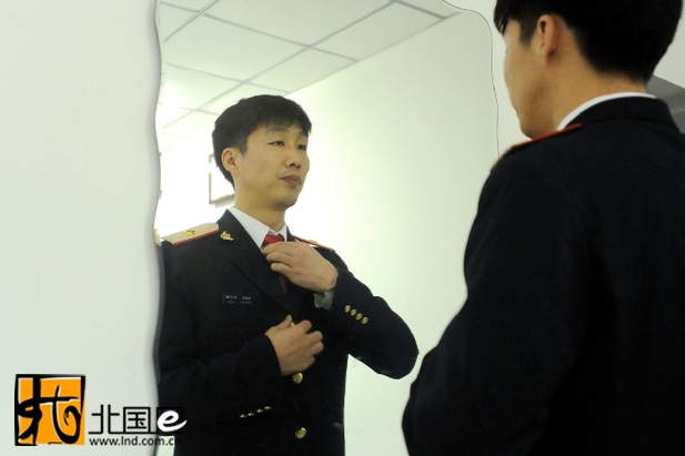 每天早晨,牛云峰都會在班前整理好自己的著裝,以最好的形象展現在旅客面前。