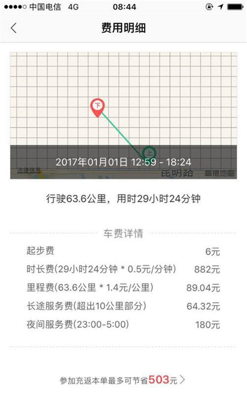 而除了多出來的90多元里程費,800多元的時長費更是不能讓張先生理解。