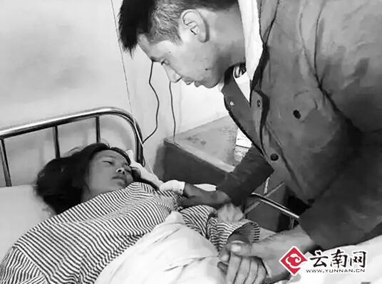 麗江90后小伙毛永老照顧傷者 林波 攝
