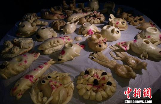 蒸制好等待展出的各式面燈!≈熘靖 攝