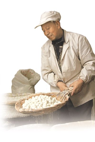 元宵是如何滾出來的?北京稻香村元宵技藝傳承人代表謝道云介紹了傳統(tǒng)元宵的制作方法:把事先和好的餡切成一個個方方正正的小塊兒,過一遍水后扔進內(nèi)有很多白面的平籮,不停搖動,餡丁自然會沾上一層面。這時把沾了面的餡丁再過水,然后再沾面、再過水、再沾面……直到沾在餡體外的面差不多有餡體那么厚為止, 就終于滾出了一籮雪白渾圓的元宵。