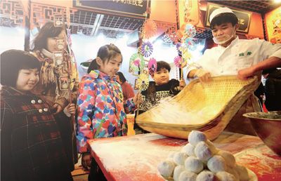 而在北京,老字號稻香村的元宵都得“排隊買”“趕早買”。不過,雞年“搶”元宵不用排隊了,北京稻香村首次在網(wǎng)上開售速凍元宵!俺载洝眰冊僖膊挥迷诤L中排隊,在家就能享受送上門的口福。