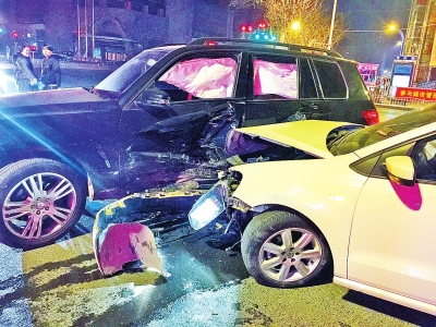 車禍發生時,已是2月15日的凌晨4時許,在紫荊山路與東大街交叉口,發生碰撞的兩輛車為一輛大眾Polo轎車和一輛奔馳GLK越野車。大眾轎車攔腰撞上奔馳車,兩車均受損嚴重變形。