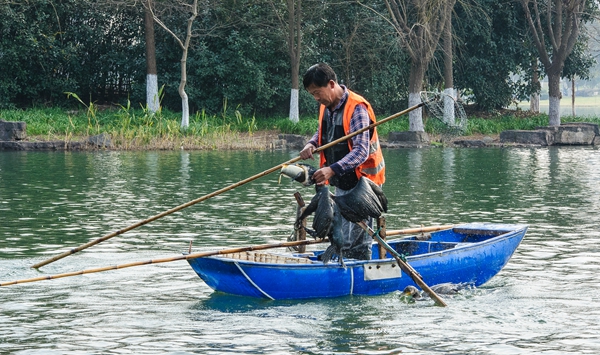 浙江在線寧波2月21日訊(浙江在線記者 王凱藝 通訊員 朱嬌嬌 陳秦 邵曉豪)一支由28只鸕鶿、3艘船只組成的生態(tài)捕魚小分隊一早就開始了一天的工作,在專業(yè)人員的吆喝下,只見一只只鸕鶿紛紛下水捕魚,不一會兒鯉魚、草魚等各種魚被捕撈上來,養(yǎng)護公司許工告訴記者,這些鸕鶿很是給力,還捕獲了一條10來斤的大鯉魚。