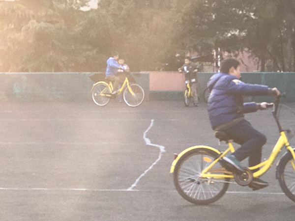 “小黃車(chē)”已經(jīng)變成孩子們的“新玩具”。 郝女士供圖