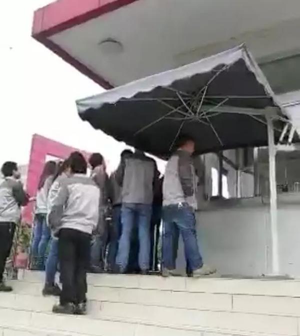 一直到周一,工人們準備正常返廠區工作時,卻被保安攔在門外,最終經過一番理論,大家好不容易進入廠區,卻又被告知不能進入生產車間,只能待在工廠的另外一處房間內,可以抽煙喝水,不被安排任何工作。