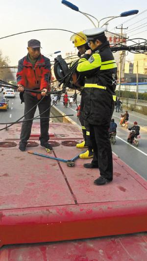 事件:一捆架在半空的電纜脫落,導(dǎo)致勝利北街交通堵塞數(shù)小時,在交警、消防官兵、熱心市民等人的共同努力下,9時左右路面逐漸恢復(fù)暢通。