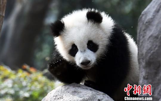 中新網成都3月1日電 (記者 安源)1日,春陽下,綠蔭上,近日成為國際網紅的大熊貓動作明星“奇一”正和奶爸在成都大熊貓繁育研究基地太陽產房的室外活動場嬉戲著。它一會兒在草地上打滾,一會兒又去水池里蹭蹭,而當奶爸經過“奇一”身邊短暫停留時,它就亮出了受到粉絲追捧的經典動作——一把抱住奶爸的腿不放手。