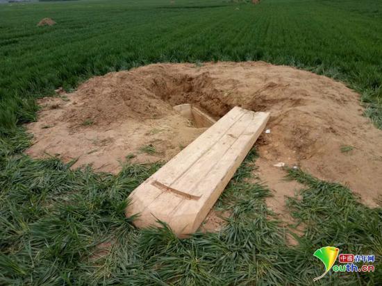 3月12日早上5點,高新禮與村民來到麥地,看見棺材蓋已經蓋上了,便挖土埋了起來。