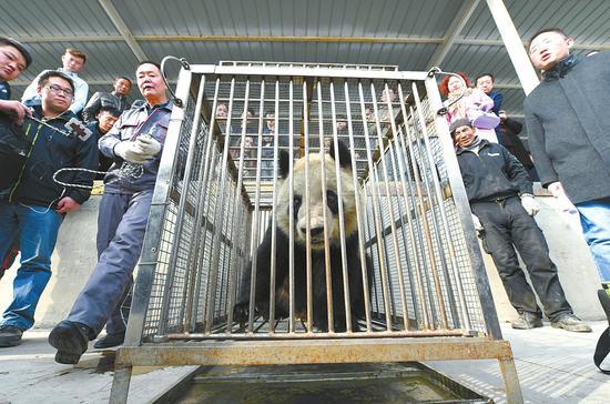 “‘蜀蘭’是有經驗的熊貓,她一看到籠箱,就知道自己又要遠行了。這兩天都悶悶不樂得不愿出門‘見客’,很多來動物園的游客都無緣見她最后一面。”柳江說,動物園在起運前一天就提前將運送的籠箱進行了消毒,放入籠舍內,讓大熊貓適應籠箱內環境,“蜀蘭”好像就已經知道她要走了。
