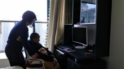 蔡雪群為患上罕見病DMD的兒子浩浩打開電腦