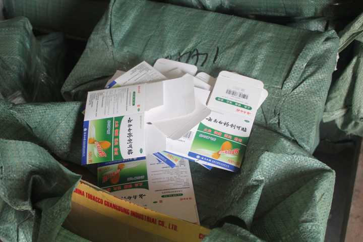 經過層層追蹤,偵查人員鎖定了這批假創可貼的“上級”——位于溫州市區的黃龍商貿城某批發店。在那里,查獲假冒品牌創可貼數十箱。