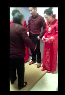 根據(jù)網(wǎng)友提供的一段2分45秒的視頻顯示,一男子站在中間,其兩旁一名短發(fā)女子和一名盤發(fā)女子均身穿紅色旗袍裝,三人同時在跪拜一位銀發(fā)的長輩(視頻中有群眾說是男子父親)。視頻中三人身旁圍著許多群眾,不時有人抄著一口福安本地話,喊著“好啊!”、“雀啊!(音,很好之意)”,“喜糖拿來,紅包包來”……
