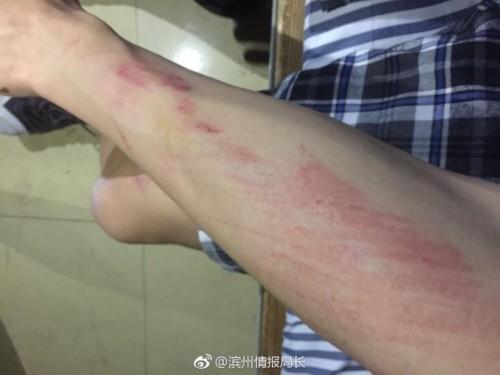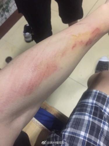 針對(duì)此事,14日上午,大眾網(wǎng)記者來到濱州學(xué)院對(duì)事件中的涉事雙方進(jìn)行了采訪。據(jù)當(dāng)事情侶王某某和武某某介紹,5月12日晚,他們?cè)谛@散步時(shí)女方武某某抱了一下王某某,恰被自律委員會(huì)的學(xué)生看到。當(dāng)自律委員會(huì)學(xué)生要求他們進(jìn)行信息登記時(shí),遭到他們拒絕,同時(shí)他們聲稱并非是本校學(xué)生。隨后,自律委員會(huì)學(xué)生要求他們證明不是本校學(xué)生過程中,雙方發(fā)生沖突進(jìn)而產(chǎn)生了肢體接觸,王某某左手臂和雙腿膝蓋等部位有擦傷。