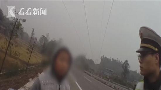 執(zhí)法人員發(fā)現(xiàn)男孩后,立即靠邊停車,指揮行駛車輛減速通過,將男孩帶到了安全地帶。