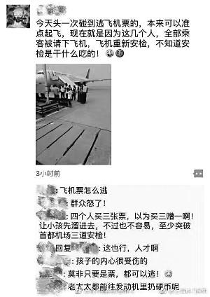 “有生之年,竟然能碰到逃票坐飛機的!本W友爆料,7月16日吉祥航空HO1252航班上,一兒童未持登機牌,致使全體乘客下機重新檢查。昨日,北京晨報記者從吉祥航空北京營業部得知確有此事,而首都國際機場表示還在核實調查中。專家認為,乘客及其孩子的行為已危及航空安全,機場安檢人員也存在瀆職行為。