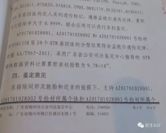 記者從梅州市公安司法鑒定中心DNA檢驗鑒定意見中看到,經鑒定,王某昌與繩某玲所生女嬰為:符合親生關系。