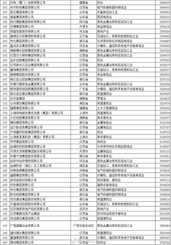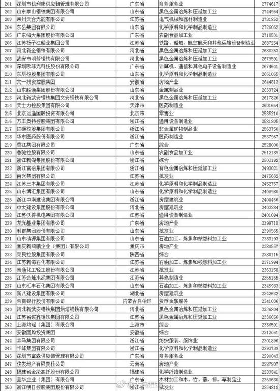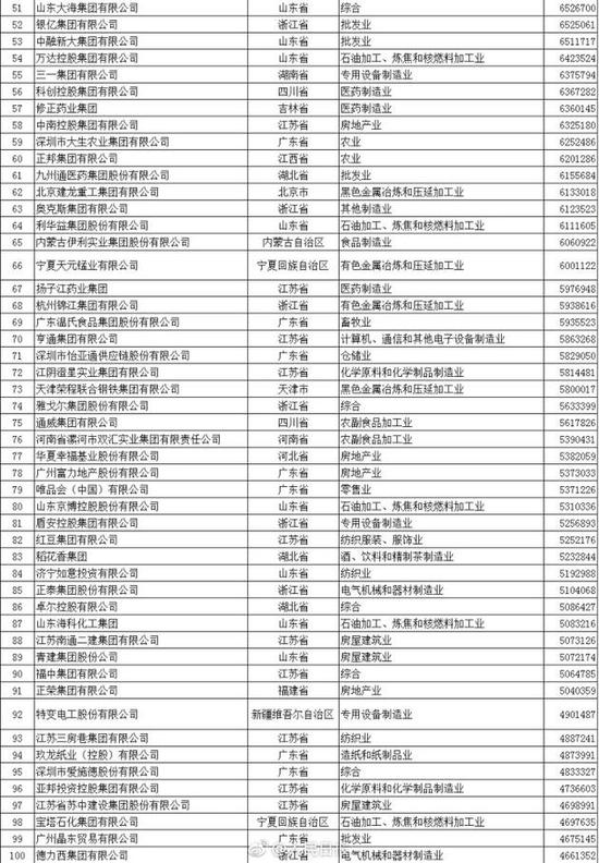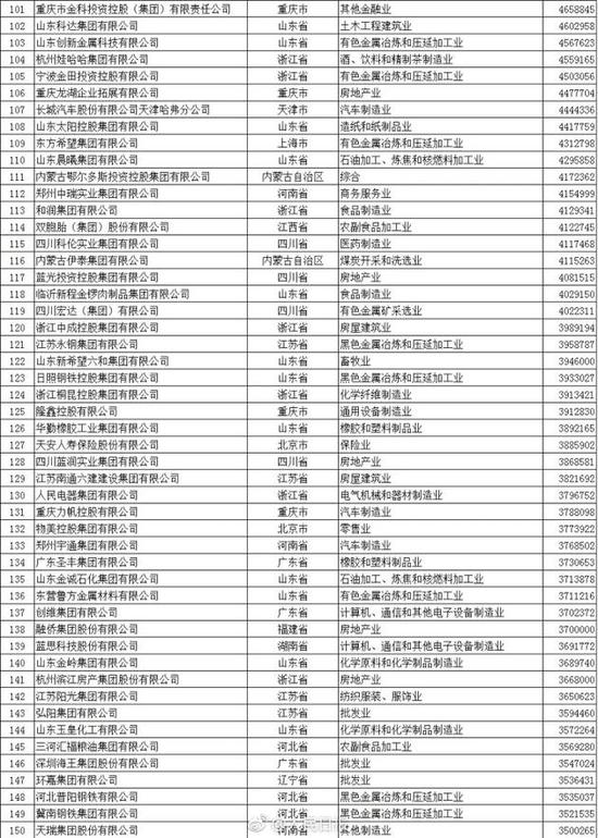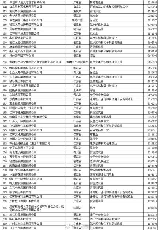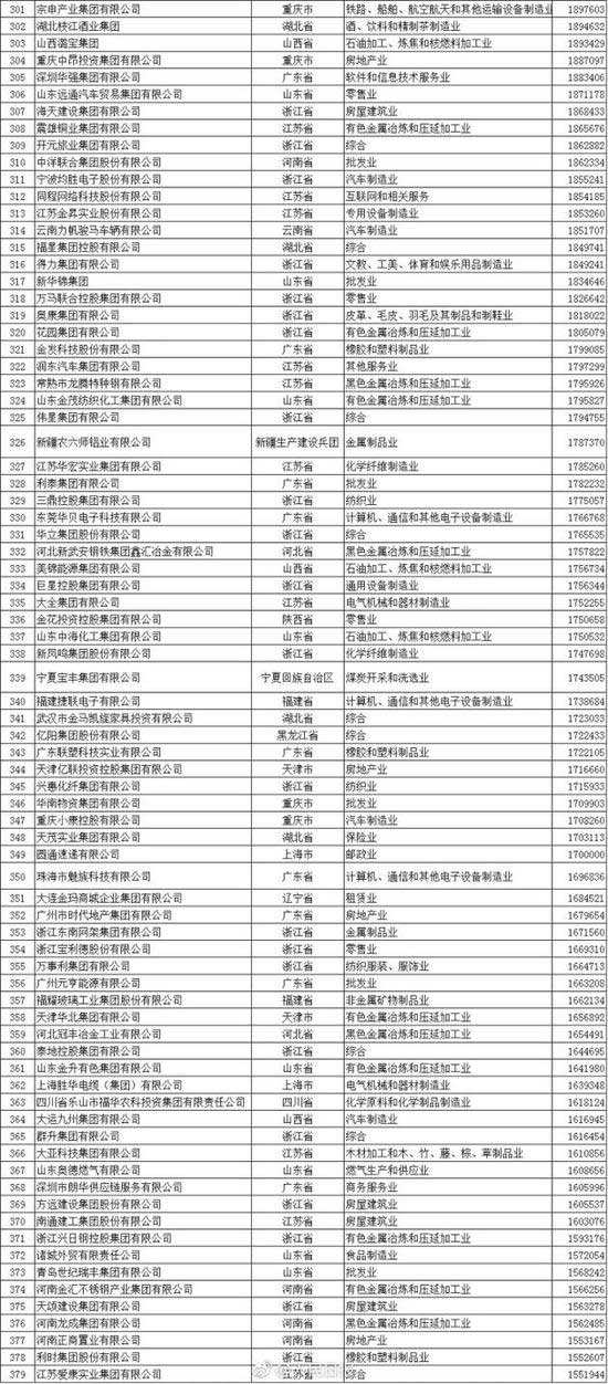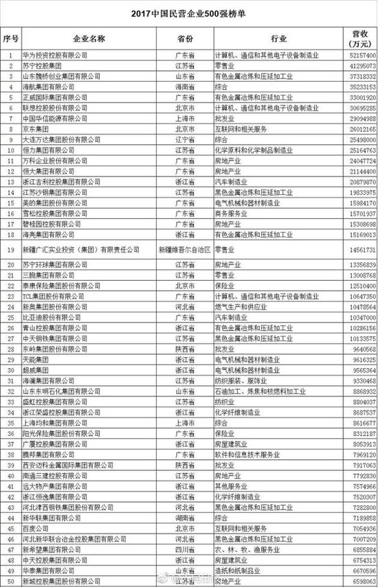 以下為2017中國民營企業500強榜單(來自人民日報微博):